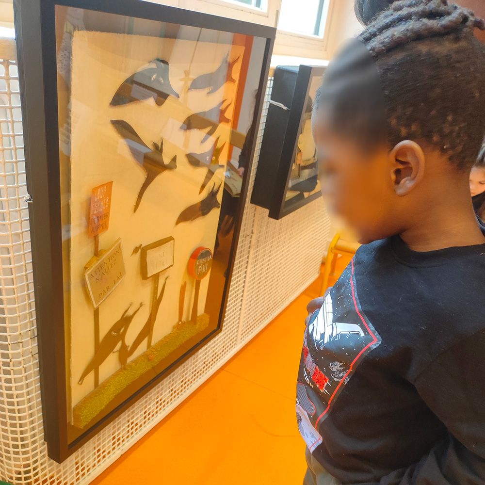 Dans cette exposition, le jeune public pourra y découvrir 14 œuvres originales, sous forme de sculptures présentées sur plot, de mobiles à suspendre en l’air, ou à accrocher au mur. Les enfants pourront aussi découvrir le travail photographique sur des illustrations tirées des albums de jeunesse et d’autres éléments complémentaires (affiches, lampe, film d’animation…).