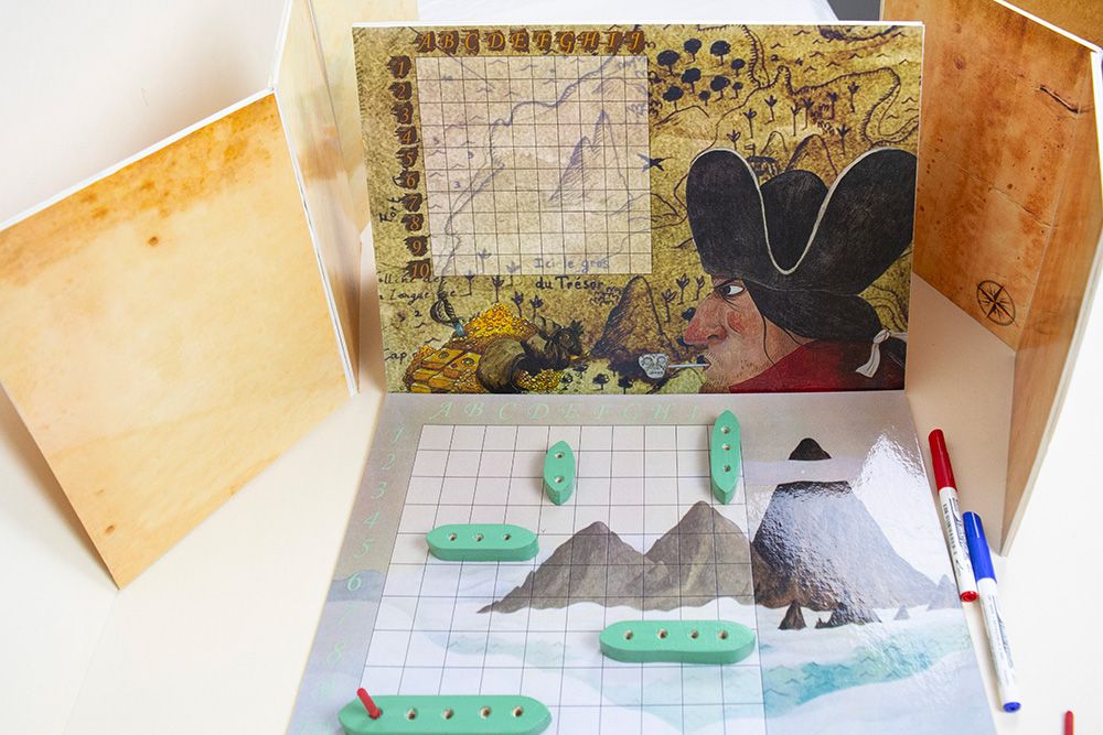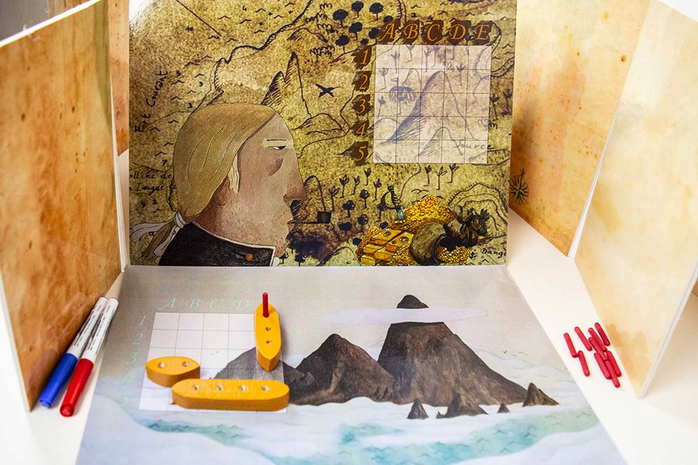 Une exposition particulièrement ludique grâce à la mise en place d’une chasse au trésor dans le lieu d’accueil de l’exposition. Celle-ci est destinée à des enfants de classes élémentaires cycle 3, pour suivre les traces de Jim Hawkins, le mousse. Avec ses nombreux éléments de scénographie et de déguisement propres à la piraterie, avec ses grands décors peints, l’expérience est poussée jusqu’à presque devenir un authentique pirate même tatoué ! Cette aventure collective est complétée par d’autres jeux comme un mémory, un jeu de bataille navale avec deux niveaux de difficulté pour faciliter l’accès aux plus jeunes, ainsi que des activités de coloriage…